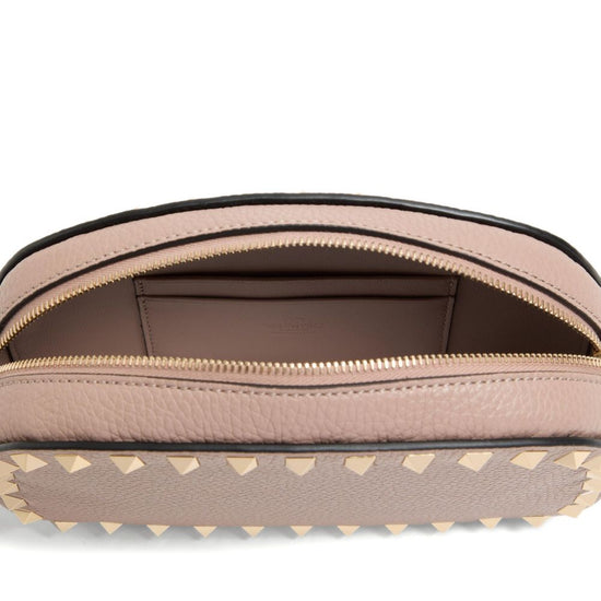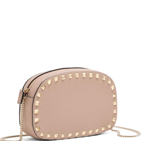 Beige gold-tone stud detailing zip closure detachable chain strap rounded shape rockstud leather mini bag