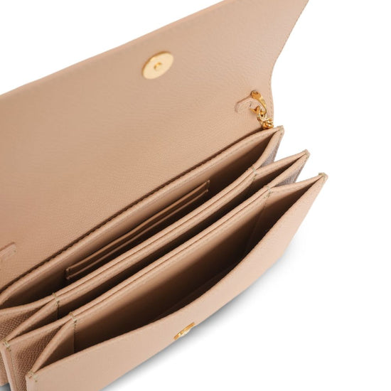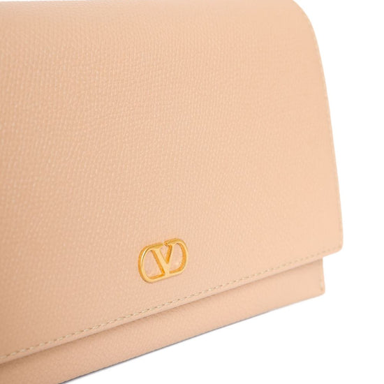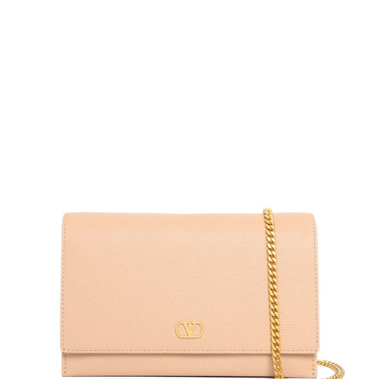 Beige leather gold-tone logo plaque chain strap flap closure multiple compartments vlogo signature leather wallet on chain size and fit - depth: 4.0 centimetres. height: 11.0 centimetres. strap: 51.0 centimetres. width: 19.0 centimetres.