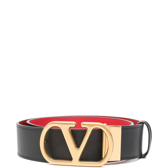 Black gold-tone hardware logo buckle adjustable fit red interior vlogo signature leather belt