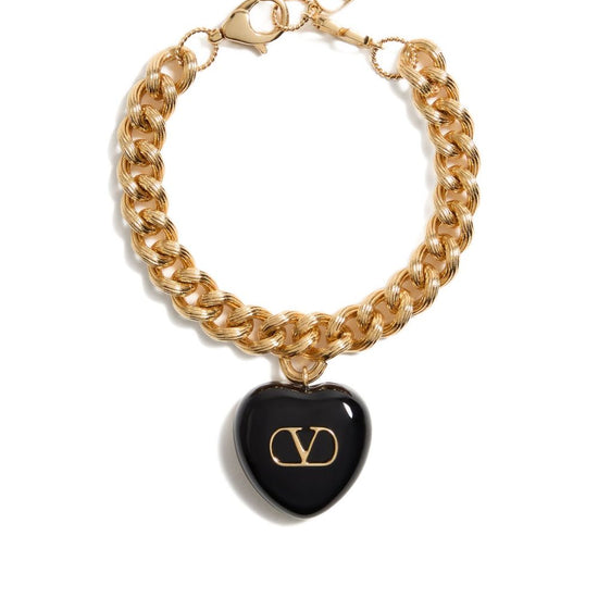 Black oversized heart charm logo engraving lobster claw fastening chunky chain design coeur royal bracelet size and fit - pendant length 2.6 cm. pendant width 2.6 cm. .
