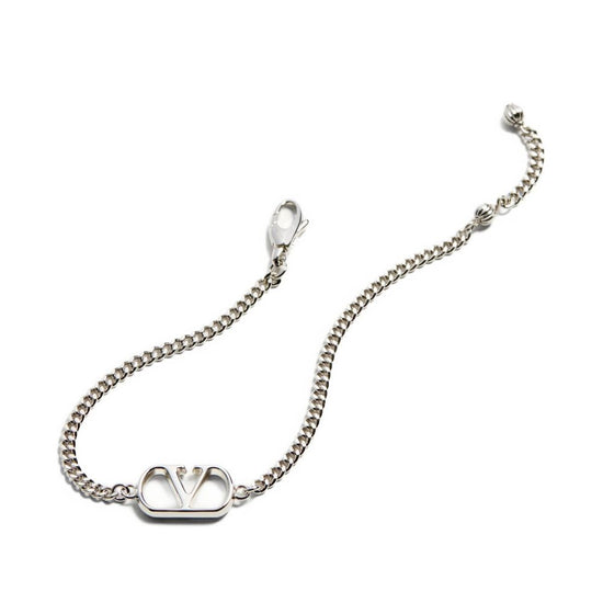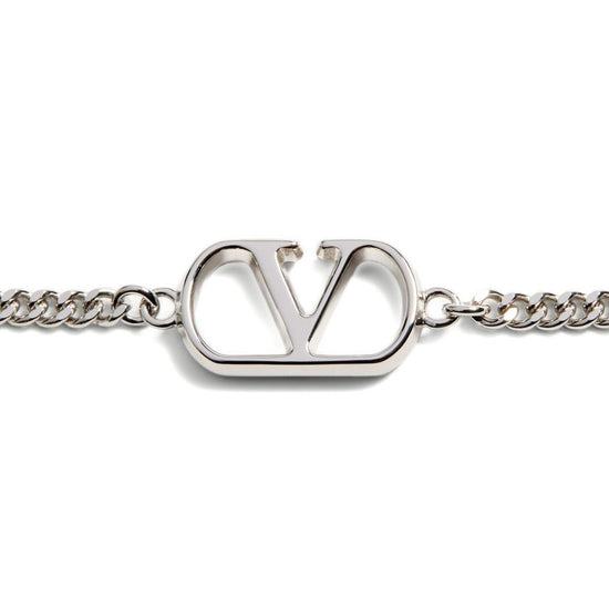 Silver chain design logo plaque detail adjustable length clasp fastening vlogo signature bracelet
