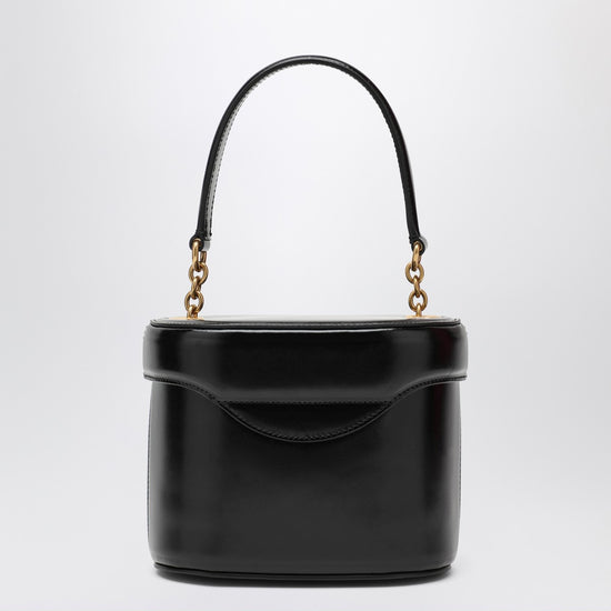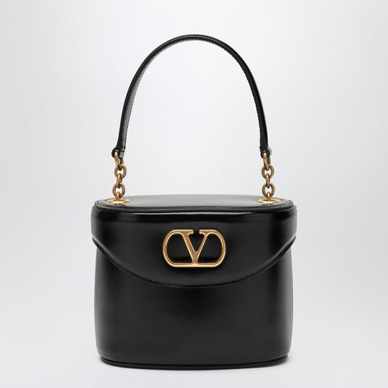 Valentino garavani black leather shoulder bag, featuring a removable handle, removable chain shoulder strap with leather detail, magnetic closure with vlogo in antique brass finish, and an internal flat pocket. size and fit - width 16 cm x height 13 cm x depth 8,5 cm shoulder strap length 110 cm handle drop: 12 cm
