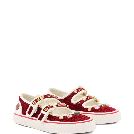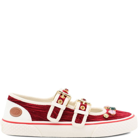 Dark red velvet texture double buckle fastening jewel embellishments dollyboard ballets