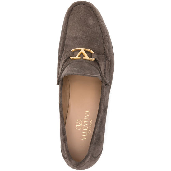 Grey logo detail slip-on style flat sole round toe vlogo signature leather loafers
