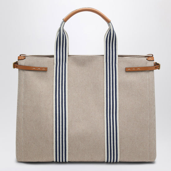 Large tote bag by valentino garavani in natural-coloured canvas, featuring two striped fabric handles and leather handles, adjustable and removable shoulder strap, side buckles and leather patch with gold-tone metal vlogo signature plaque, magnetic closure and an internal flat zipped pocket. size and fit - width 35 cm x height 29 cm x depth 18 cm adjustable shoulder strap length min 80 cm - max 100 cm handle drop 16 cm