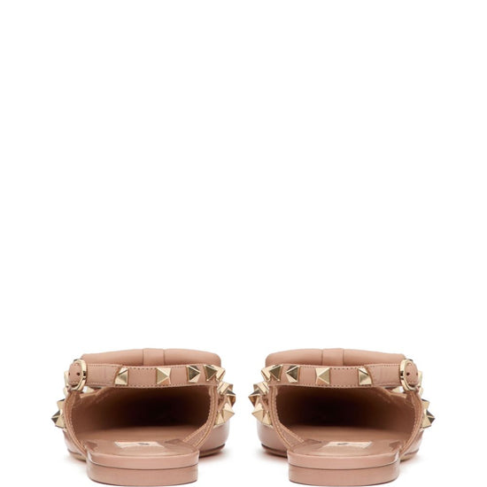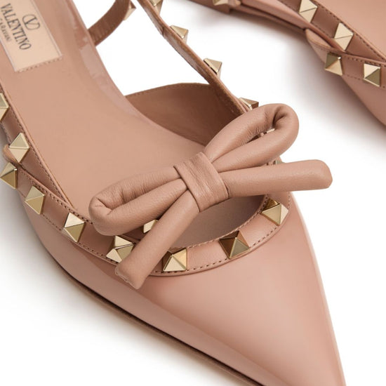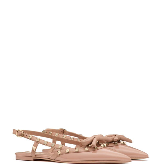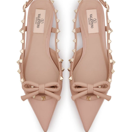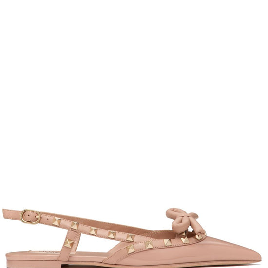 Rose pink calf leather/goatskin/lambskin signature rockstud detailing bow detailing pointed toe buckle-fastening slingback strap branded insole flat sole slingback rockstud ballet flat size and fit - heel 0,2 in / 0,5 cm
