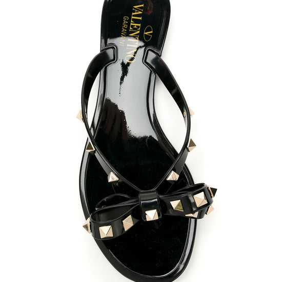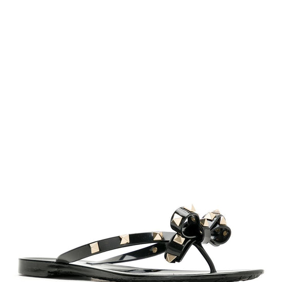 Black gold-tone rockstud embellishment bow detailing thong strap branded insole slip-on style summer rockstud sandals
