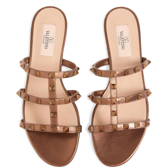 Valentino Garavani Rockstud Low Slide Sandal in Laminated Nappa Leather