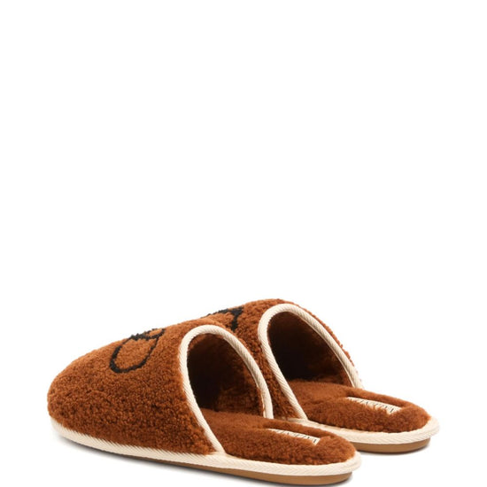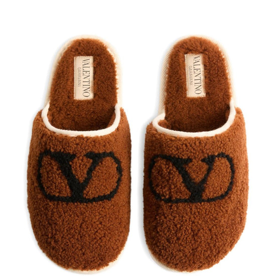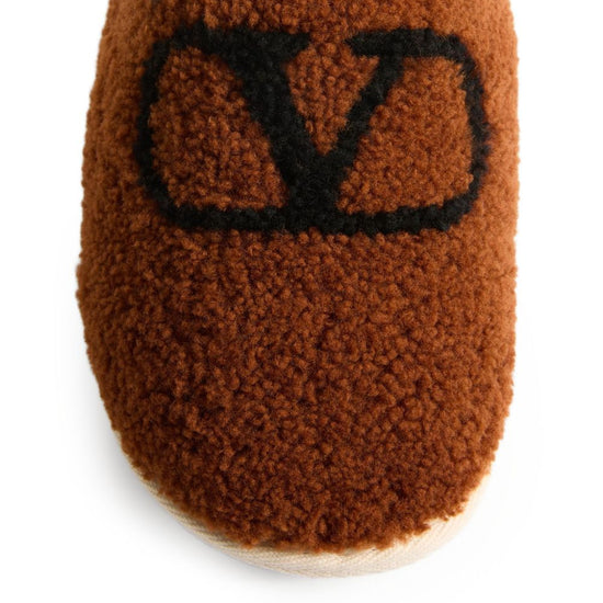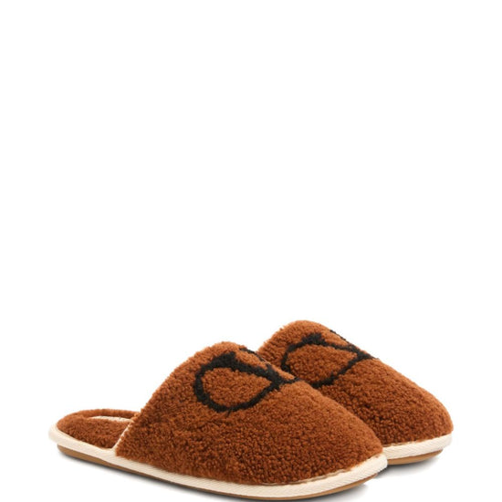 Brown wool texture vlogo signature detail slip-on style rubber sole ta chambre wool slippers