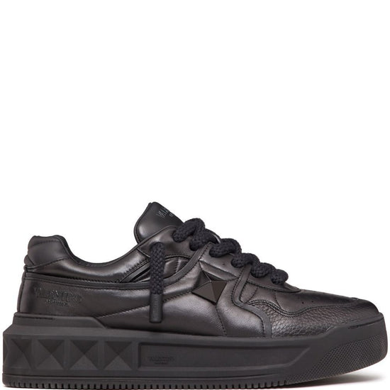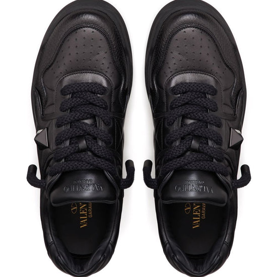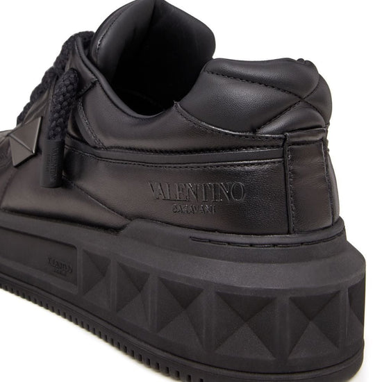 Black nappa leather signature roman stud detailing logo-print tongue perforated toebox round toe front lace-up fastening flatform sole one stud xl leather sneakers
