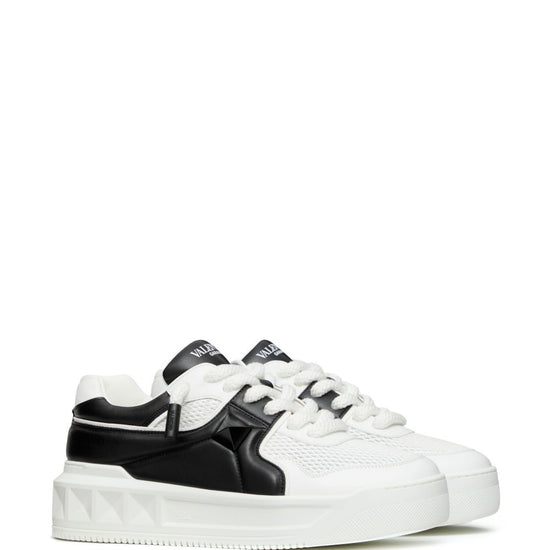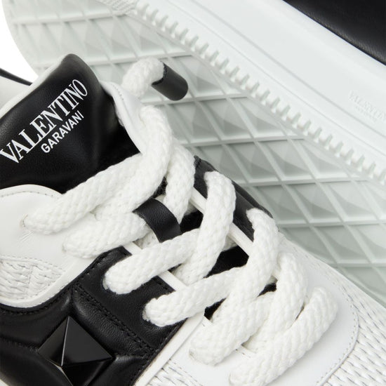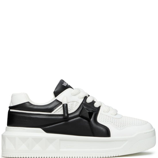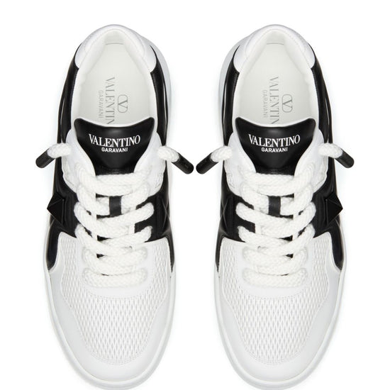 White/black calf leather mesh panelling signature roman stud detailing logo-debossed tongue front lace-up fastening round toe branded insole chunky rubber sole one stud xl leather sneakers size and fit - heel 1,8 in / 4,5 cm; platform 1,6 in / 4 cm