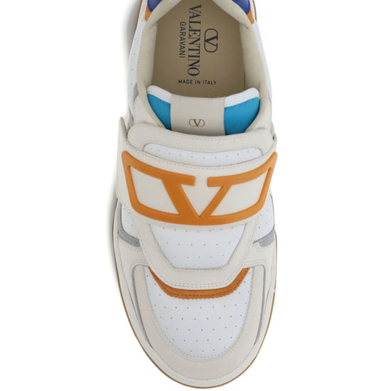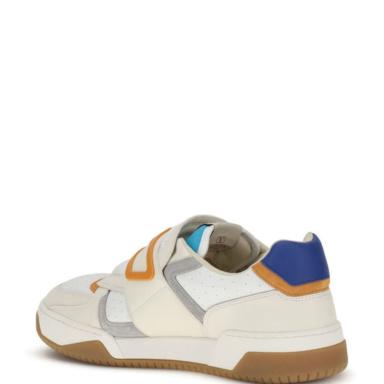 Off-white leather upper touch strap rubber sole perforated details contrasting panels joie de jouer leather sneakers