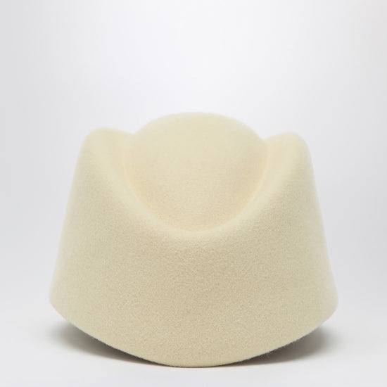 Valentino garavani cream merino wool hat, featuring a small metallic detail with a golden vlogo signature on the back.