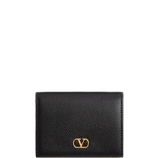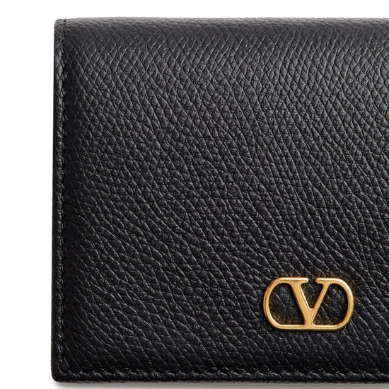 Valentino wallet black calf leather pebbled texture gold-tone logo plaque foldover top with press-stud fastening internal card slots the full look includes valentino garavani accessories. vlogo signature leather wallet