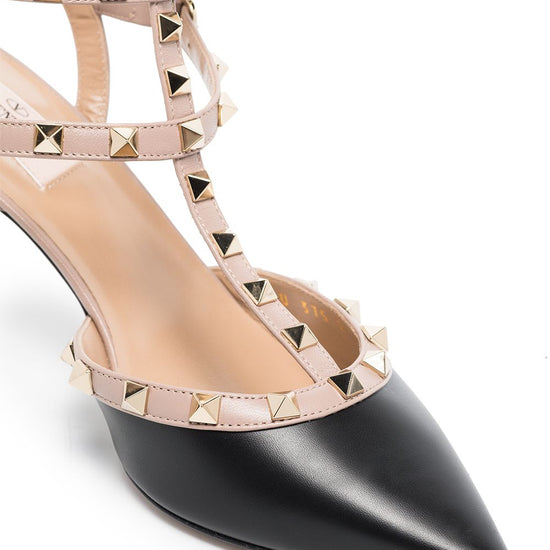 Pointed toe design, buckled ankle strap, gold-tone stud detailing, logo insole and high heel. material: leather. rockstud leather pumps size and fit - heel 6,5 cm