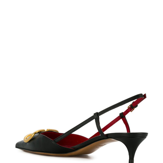 Black leather vlogo signature pointed toe side buckle fastening 40mm heel vlogo signature leather slingback pumps