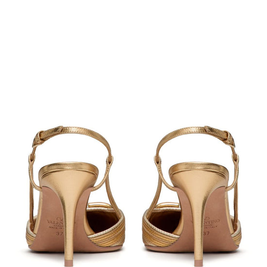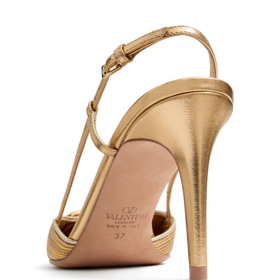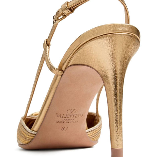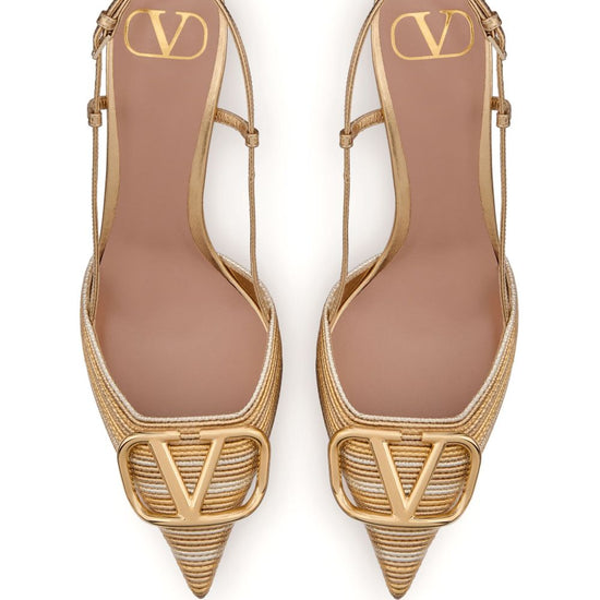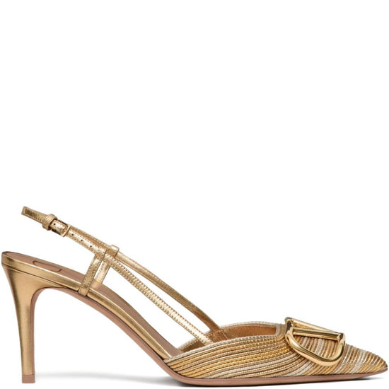 Gold-tone cotton/calf leather vlogo signature pointed toe buckle-fastening slingback strap branded insole high heel vlogo signature leather slingback pumps