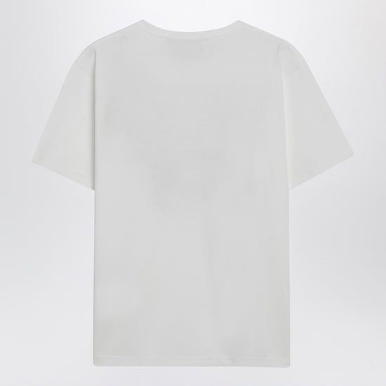 Ivory cotton t-shirt by valentino, featuring ribbed crew neck, short sleeves, and contrasting red panther print on the front. size and fit - model wears size s model measurements: height: 179 cm chest: 82 cm waist: 65 cm hips: 90 cm