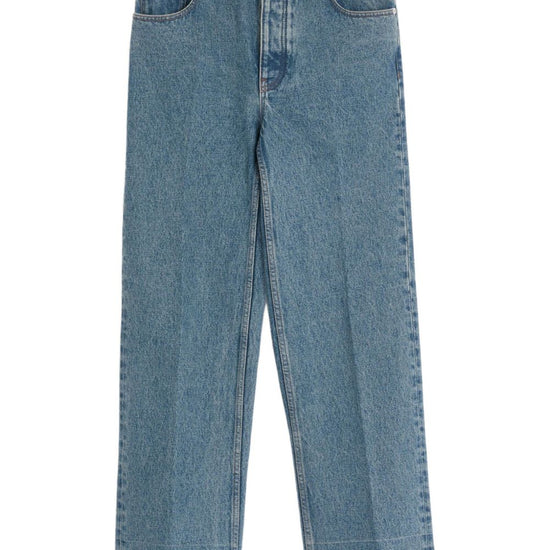 Blue front button fastening belt loops classic five pockets denim cotton jeans