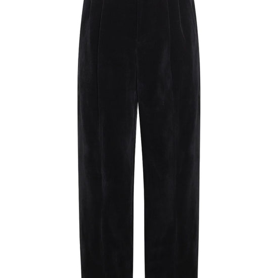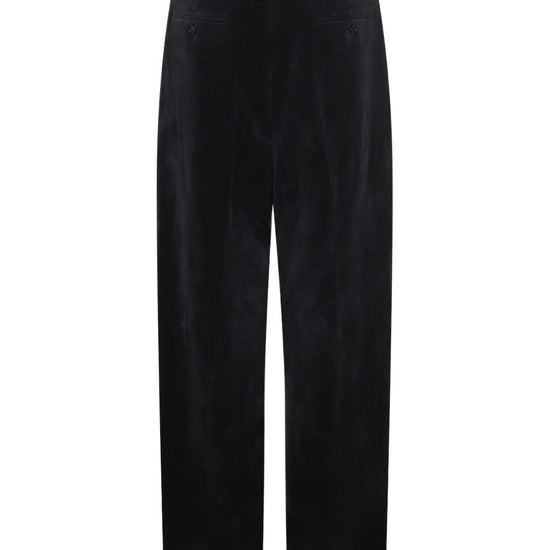 two rear button-fastening jetted pockets cotton and linen blend trousers