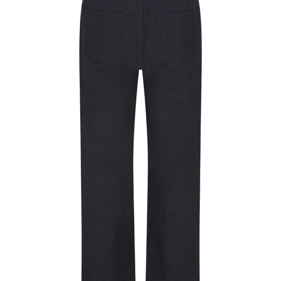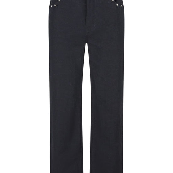 Blue stud embellishment button fastening leather logo patch embroidered cotton trousers