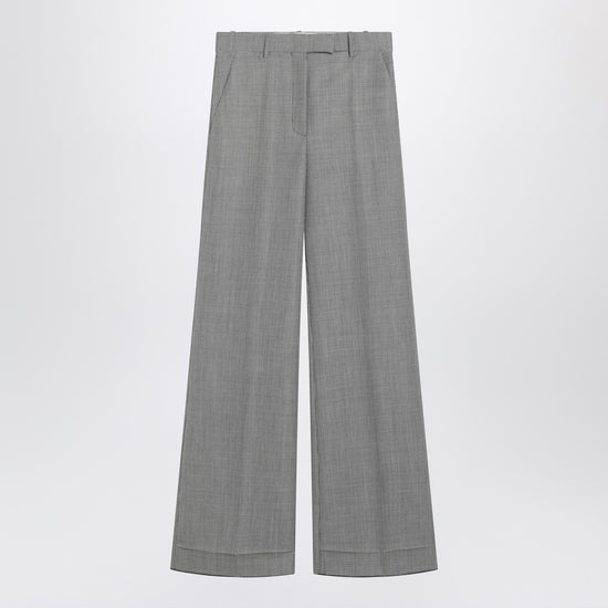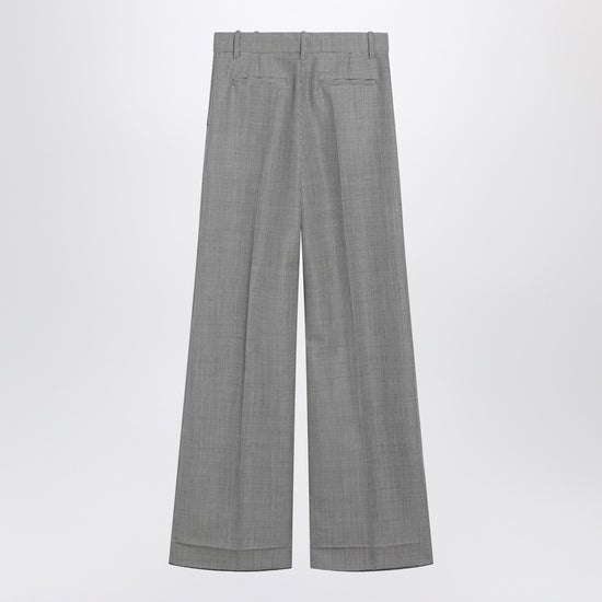 Palazzo trousers by valentino in ivory and black virgin wool and mohair blend with vichy pattern, featuring front zip, button and hook closure, high waist with belt loops, two side pockets, two back welt pockets, and pressed pleats front and back. size and fit - model wears size 40 it model measurements: height: 178 cm chest: 83 cm waist: 63 cm hips: 91 cm