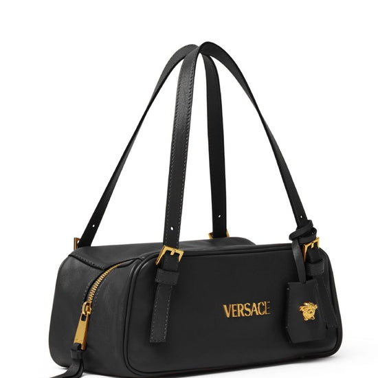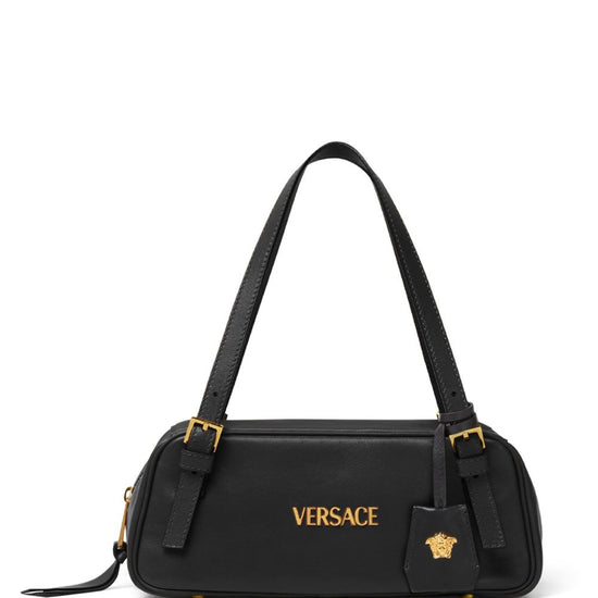 main compartment versace tag leather bowling bag