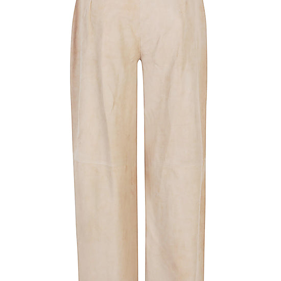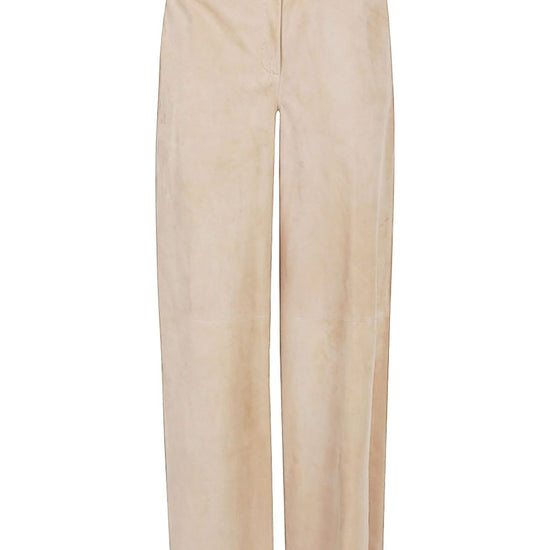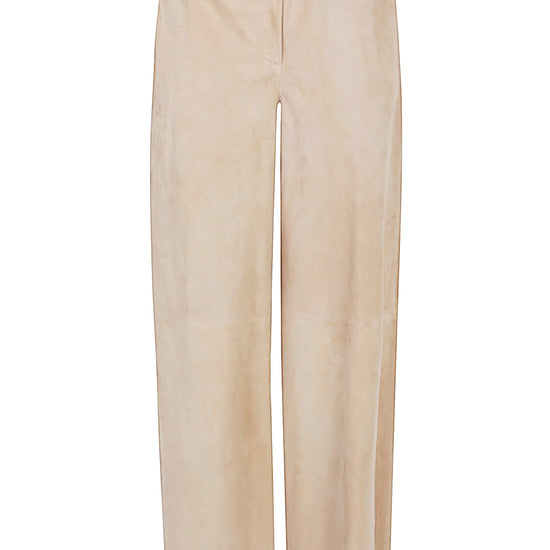 Suede trousers with straight leg, straight hem, two front pockets and zip and button closure. suede leather trousers size and fit - this piece fits true to size. we recommend you get your regular size. model is 1,75m / 5ft 8in wearing size 40 (it)