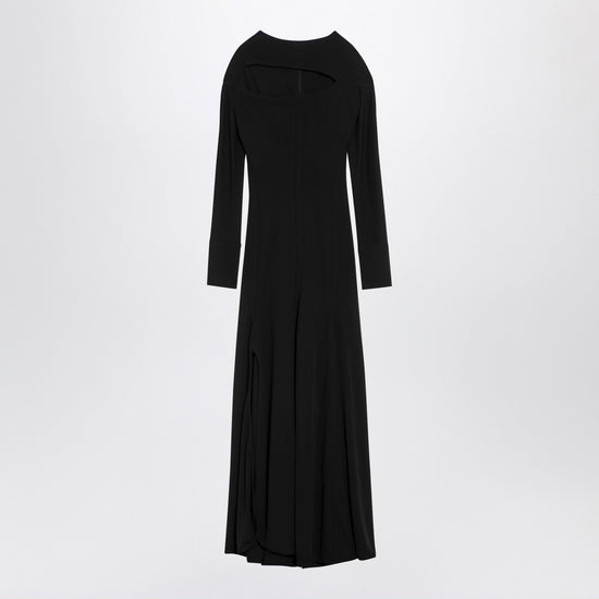 Black viscose dress by victoria beckham features long sleeves, cut-out front, front slit and back zip fastening. size and fit - model wears size 8 uk model measurements: height: 179 cm chest: 82 cm waist: 65 cm hips: 90 cm