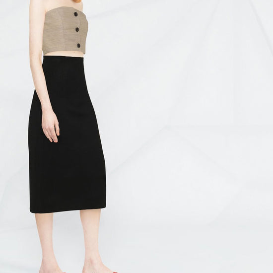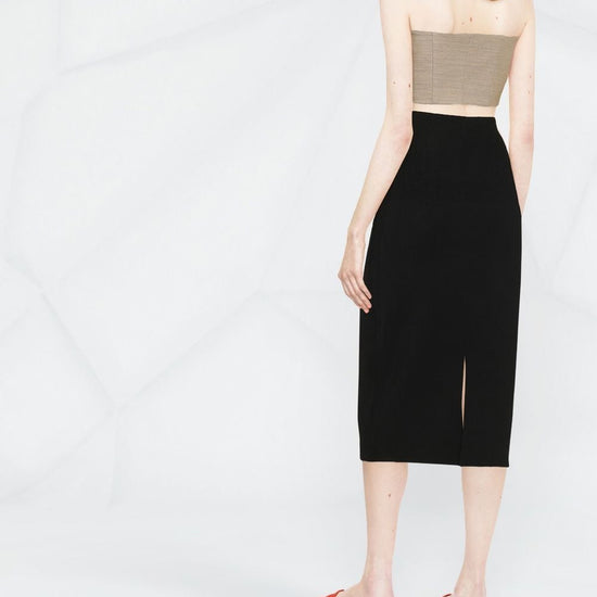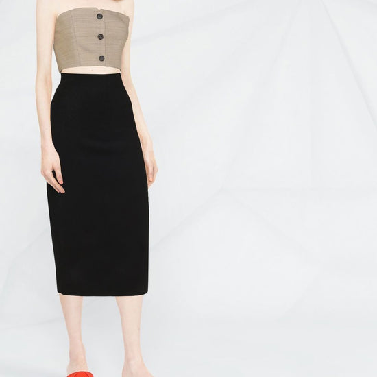 rear slit  fitted midi skirt size and fit - this piece fits true to size. we recommend you get your regular size. model is 1,75m / 5ft 8in wearing size 8 (uk)