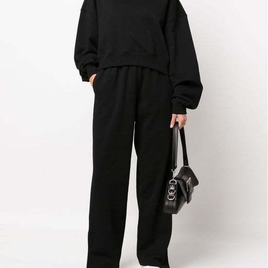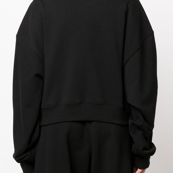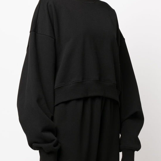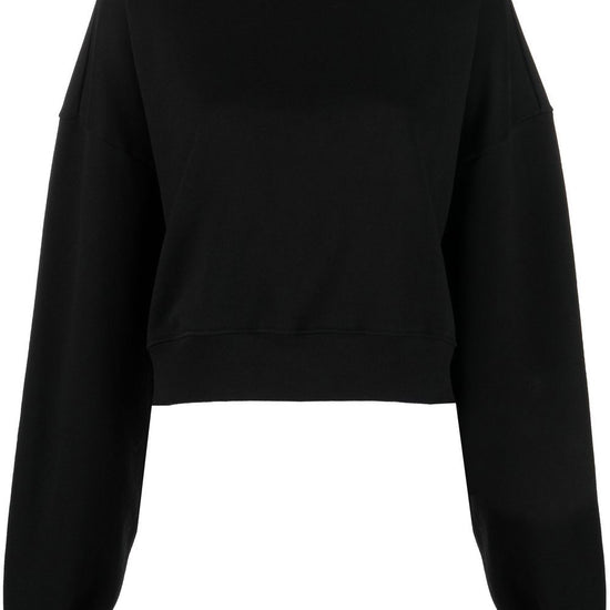 X hailey bieber oversized jumper from wardrobe.nyc featuring black, cotton, oversize frame, knitted construction, round neck and long sleeves. oversized cotton sweatshirt size and fit - this piece fits true to size. we recommend you get your regular size. model is 1,75m / 5ft 8in wearing size s