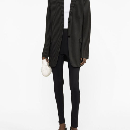 Elasticated-waist rear-slit leggings from wardrobe.nyc featuring black, stretch-design, high waist, elasticated waistband and rear slit. high waist zipped leggings size and fit - this piece fits true to size. we recommend you get your regular size. model is 1,75m / 5ft 8in wearing size s