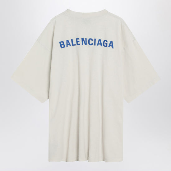 Balenciaga vintage white jersey t-shirt, characterized by a ribbed crew neck, worn effect details, short sleeves, embroidered balenciaga logo on the front and back, and medium fit. size and fit - model wears size l model measurements: height: 187 cm chest: 102 cm waist: 76 cm hips: 92 cm