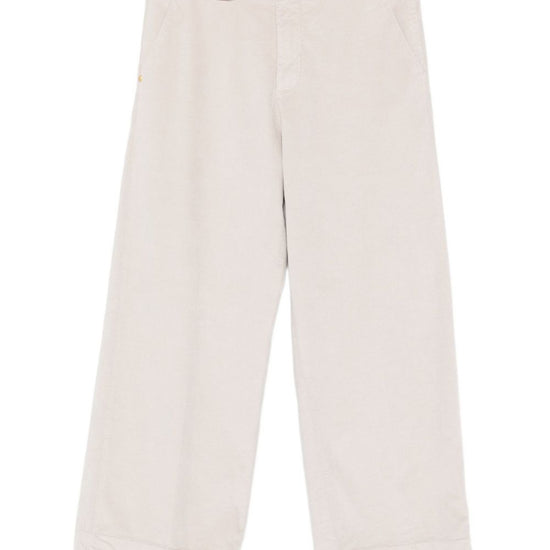 Beige cuffed hems button fly front pockets straight leg velvet trousers