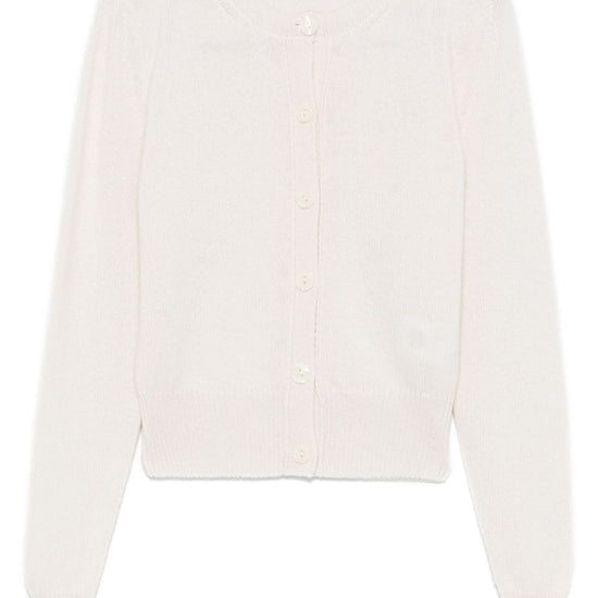 Off-white cashmere knitted construction front button fastening crew neck long sleeves ribbed cuffs and hem gcollo sandra cashmere cardigan size and fit - this piece fits true to size. we recommend you get your regular size. model is 1,75m / 5ft 8in wearing size 40 (it)