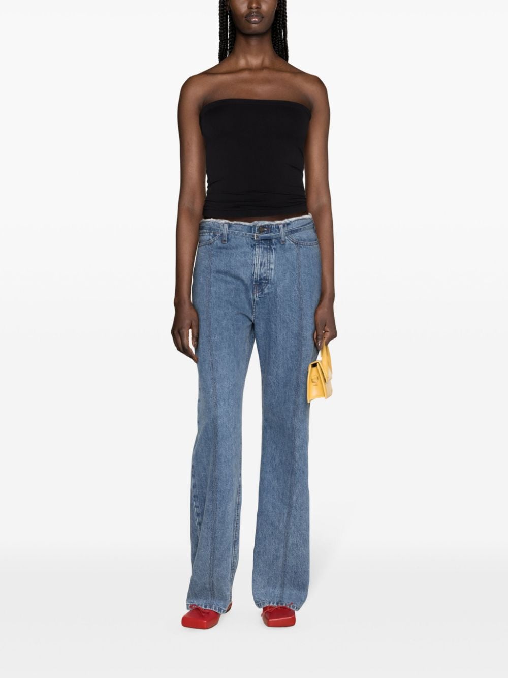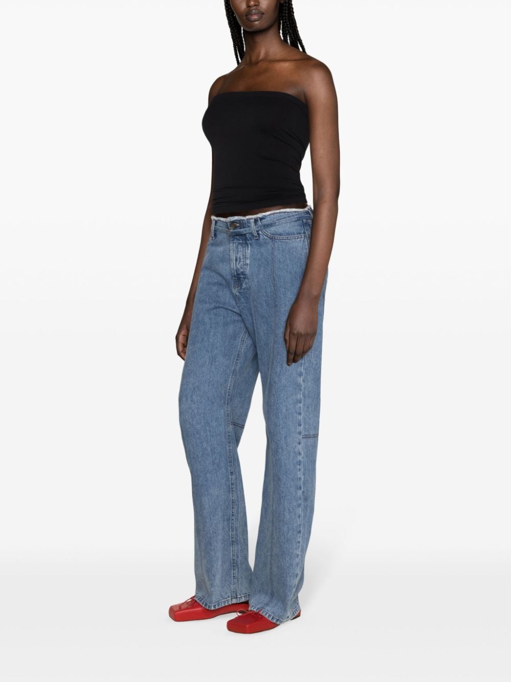 Black stretch-design ribbed knit tube design elasticated band strapless sleeveless elasticated hem unlined fatal sleeveless top