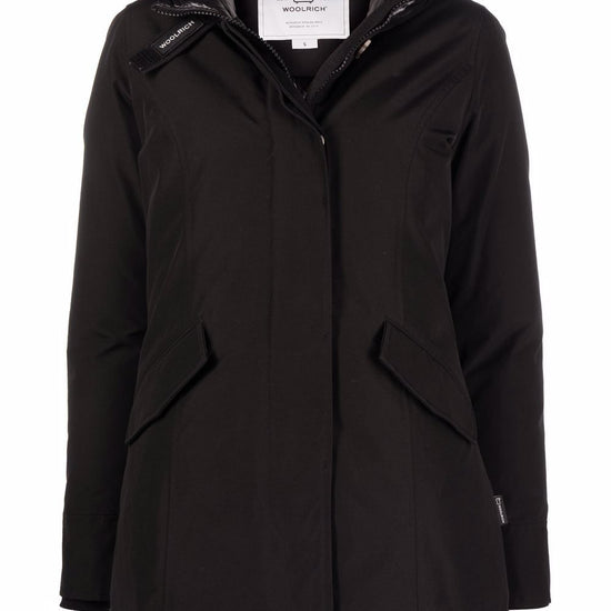Black cotton blend/feather down arctic padded parka from woolrich featuring padded design, classic hood, concealed front button fastening, front flap pockets and long sleeves. arctic parka size and fit - this piece fits true to size. we recommend you get your regular size. model is 1,75m / 5ft 8in wearing size s