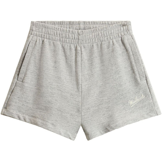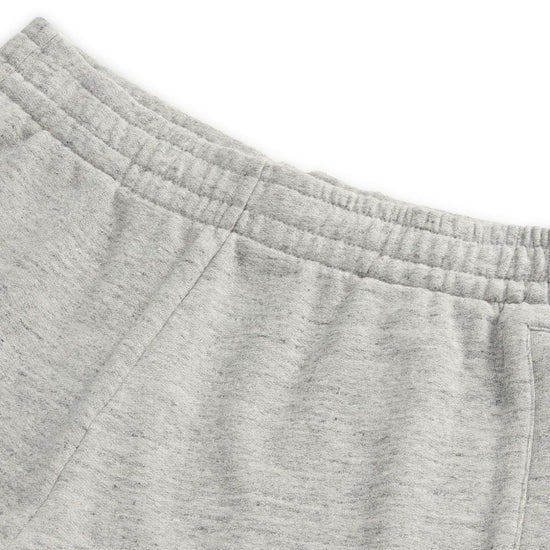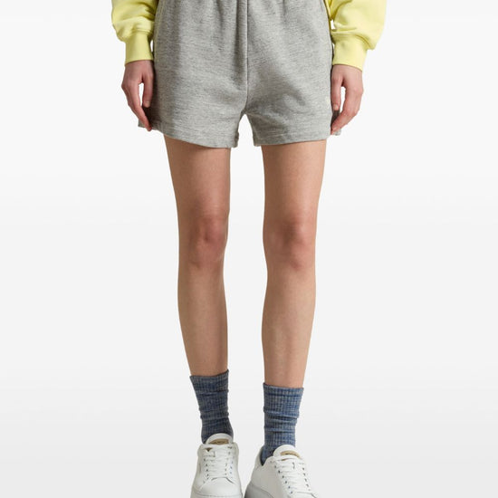 Heather grey elasticated waistband side slit pocket logo print to the front cotton shorts size and fit - this piece fits true to size. we recommend you get your regular size. model is 1,75m / 5ft 8in wearing size s