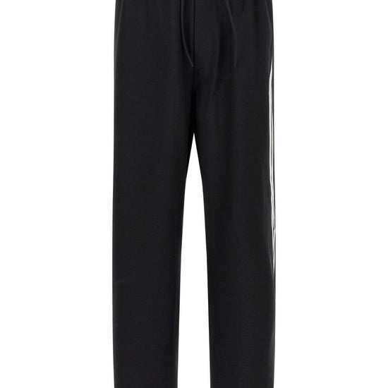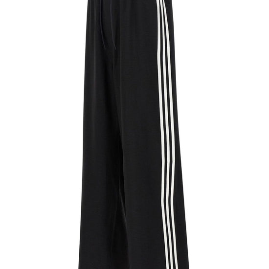 Black drawstring fastening side stripes straight leg wide leg mid-rise waist track pants