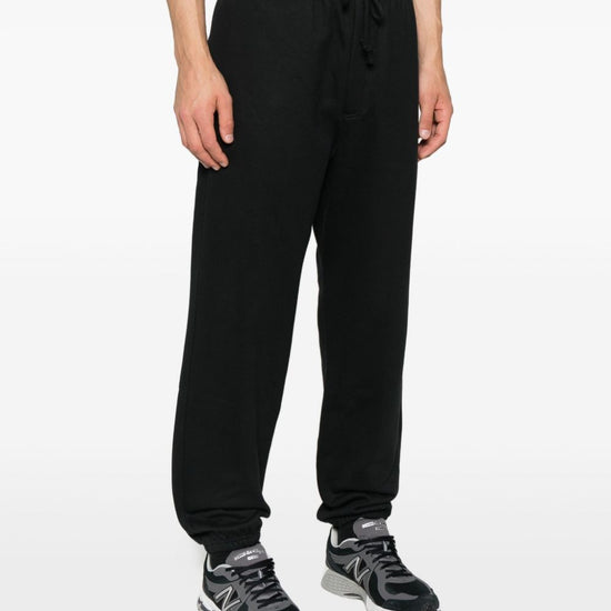 Black cuffed hems drawstring waist side pockets straight leg jersey fabric logo cotton sweatpants