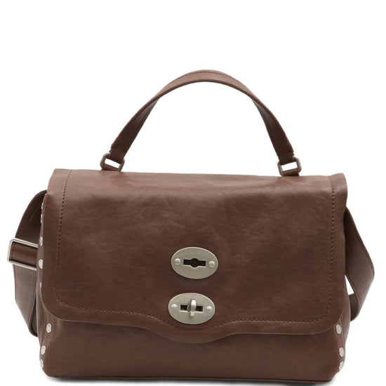 this piece comes complete with a protective dust bag. postina tabacco baby leather handbag