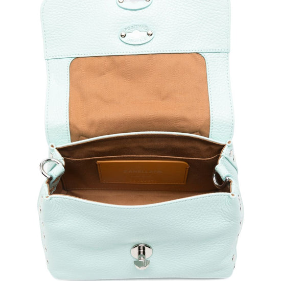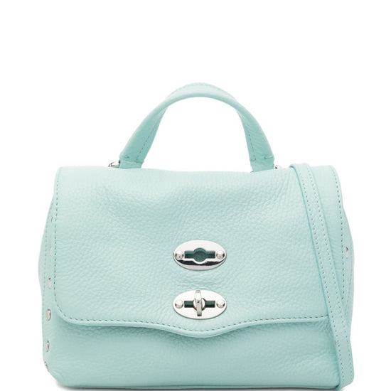 Blue top handle detachable shoulder strap -tone hardware studded details clasp fastening this piece comes complete with a protective dust bag. postina daily baby leather handbag