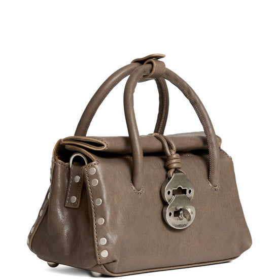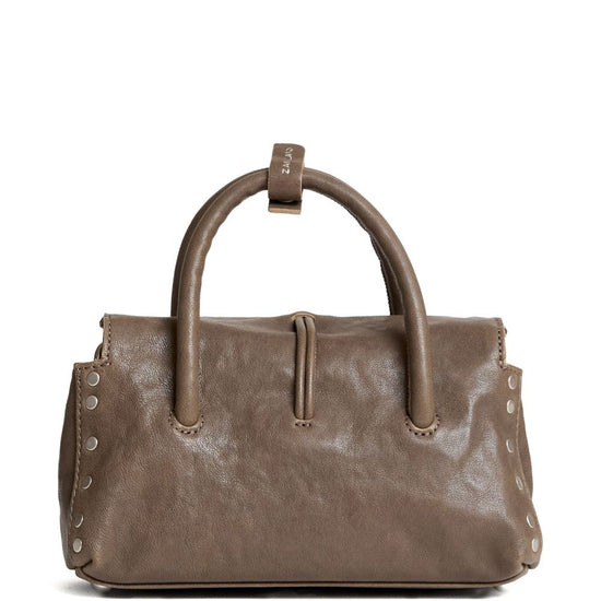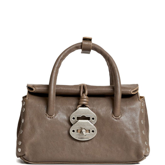 Brown leather top handle silver-tone hardware dotta tabacco baby small leather handbag