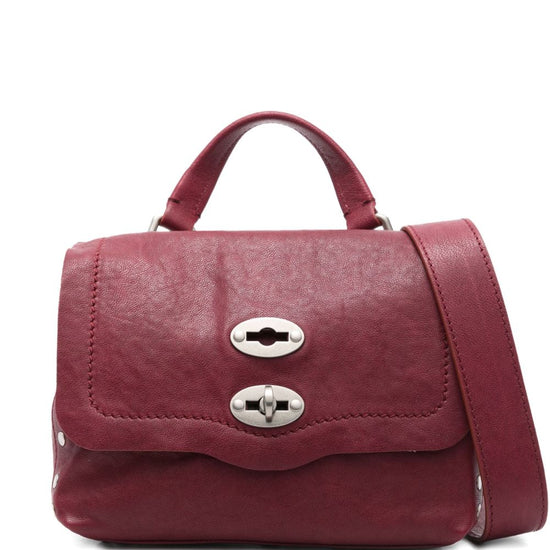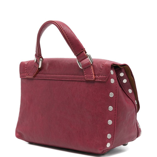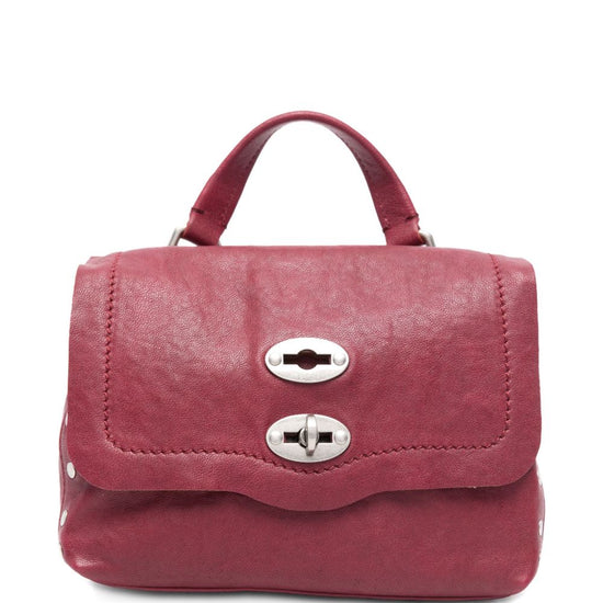 Red turn-lock fastening double clousure detachable adjustable shoulder strap silver-tone stud embellishments postina tabacco baby leather handbag