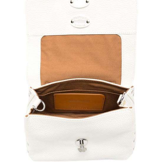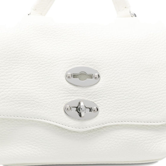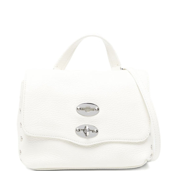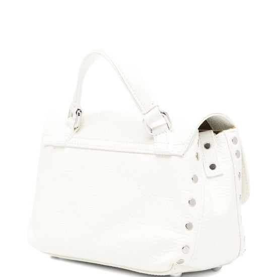 White top handle detachable shoulder strap silver-tone hardware studded details clasp fastening this piece comes complete with a protective dust bag. postina daily baby leather handbag