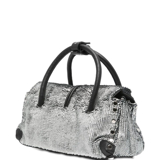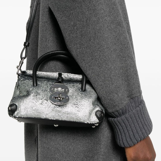 Silver-tone top handles destachable strap this piece comes complete with a protective dust bag. dotta cbi baby leather handbag size and fit - depth: 11.0 centimetres. handle: 13.0 centimetres. height: 11.0 centimetres. width: 23.0 centimetres.