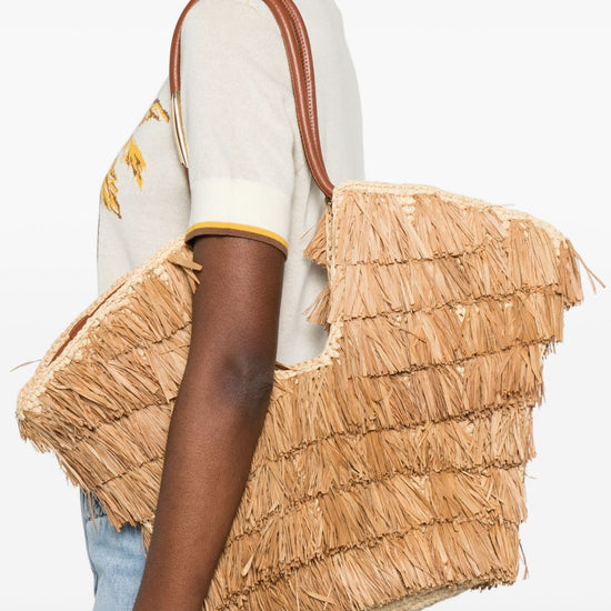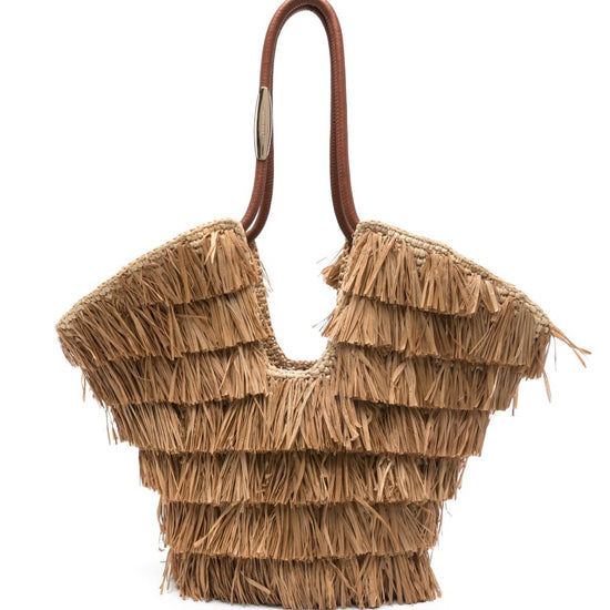 Light brown fringed design leather handles gold-tone hardware this piece comes complete with a protective dust bag. goldentime medium tote size and fit - depth 12 cm. handle 21 cm. height 35 cm. width 50 cm.