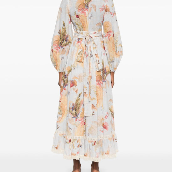 lace trim ascension printed midi dress size and fit - this piece fits true to size. we recommend you get your regular size. model is 1,75m / 5ft 8in wearing size 1 (num)