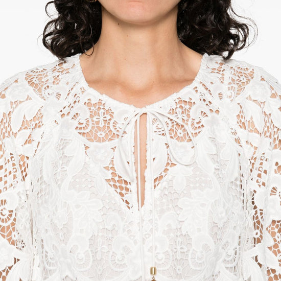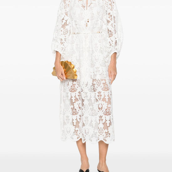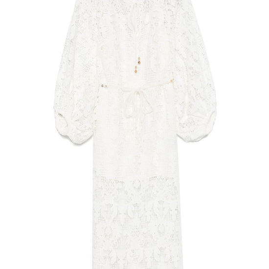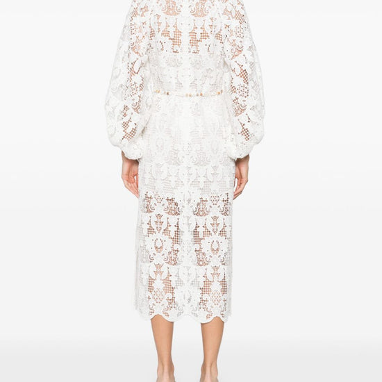 White rear zip fastening front lace-up fastening drawstring waist long puff sleeves coco lace midi dress size and fit - this piece fits true to size. we recommend you get your regular size. model is 1,75m / 5ft 8in wearing size 1 (num)