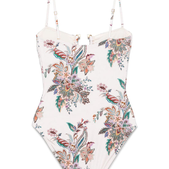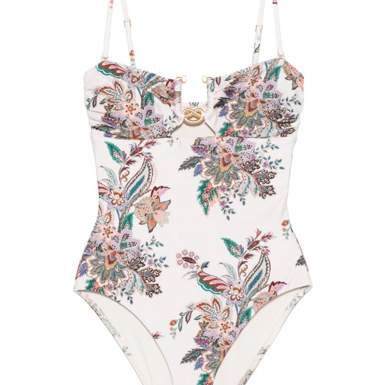 Sand beige two adjustable detachable shoulder straps knot detailing paisley print be mindful to try on swimwear over your own garments. rhiannon printed swimsuit size and fit - this piece fits true to size. we recommend you get your regular size. model is 1,75m / 5ft 8in wearing size 1 (num)